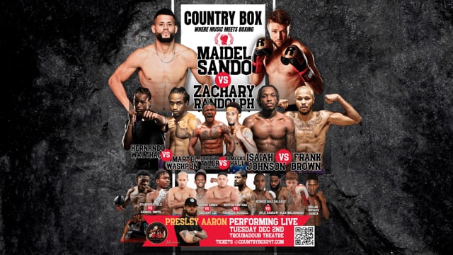 🎸🥊 COUNTRY BOX — LIVE IN NASHVILLE! 🥊🎸 Where Country Music Meets Championship Boxing! Get ready for an unforgettable night of hard-hitting action and boot-stompin’ tunes at the world-famous Troubadour on December 2, 2025! 🔥 Main Event: Maidel Sando vs Zachory Randolph 💥 Feature Fights: Hernando Wathal vs Martel Washpun Isiah Johnson vs Frank Brown […]